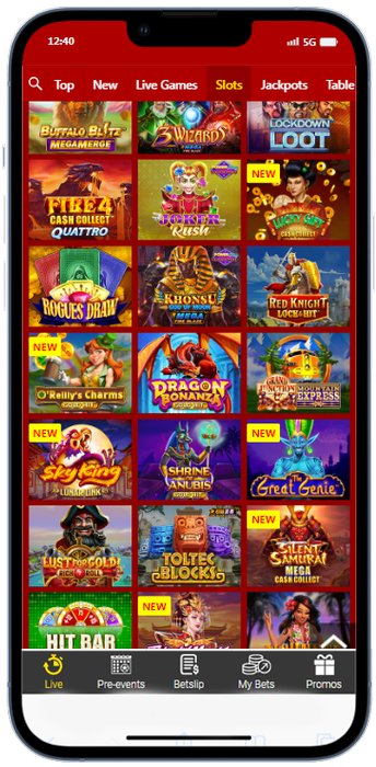 - Select a game. Tap the “Casino” button in the burger menu and select the appropriate slot, table game, or live dealer table.