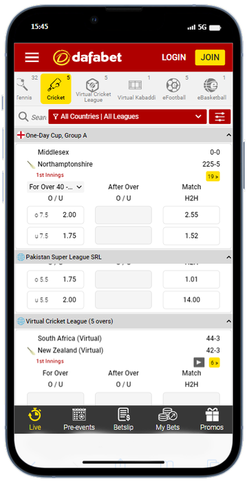 Mobile Cricket Betting in the Dafabet App