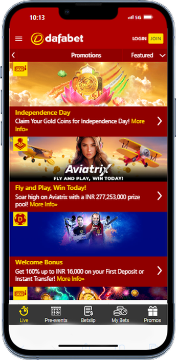 This is another reward for new players who gamble on the move. The Dafabet app offers a 100% First Day Refund (of up to 1,500 INR). The gift is for new players, so it is available only once. Remember to fulfill a 10x wager.
